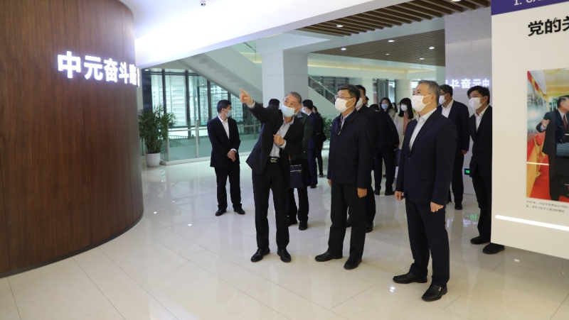 ?。▓D)羅乾宜一行參觀中工國際下屬企業(yè)中國中元國際工程有限公司(以下簡稱“中國中元”)業(yè)務(wù)展廳,聽取中國中元、北京起重運(yùn)輸機(jī)械設(shè)計(jì)研究院有限公司發(fā)展歷程、行業(yè)優(yōu)勢和經(jīng)營成果,以及在抗擊新冠肺炎疫情、冬奧設(shè)施建設(shè)中的貢獻(xiàn)等情況匯報(bào)
